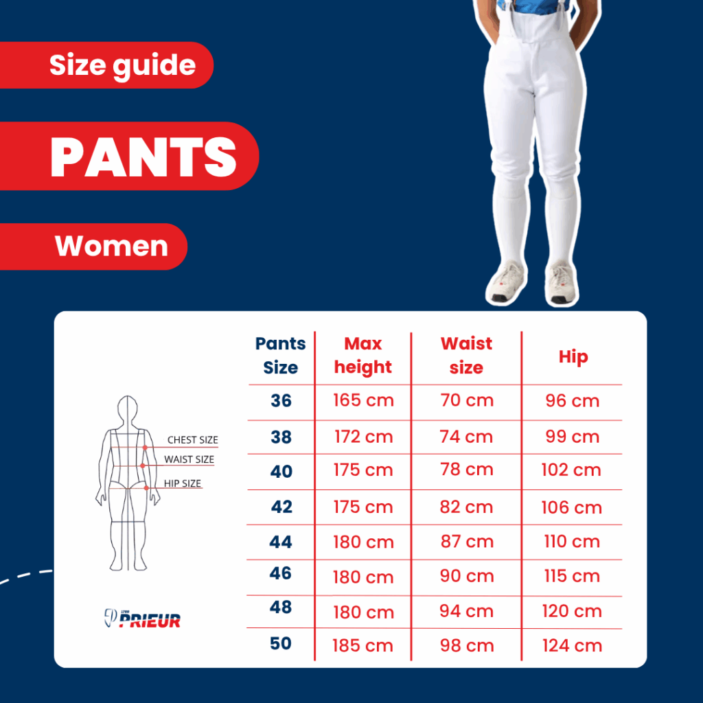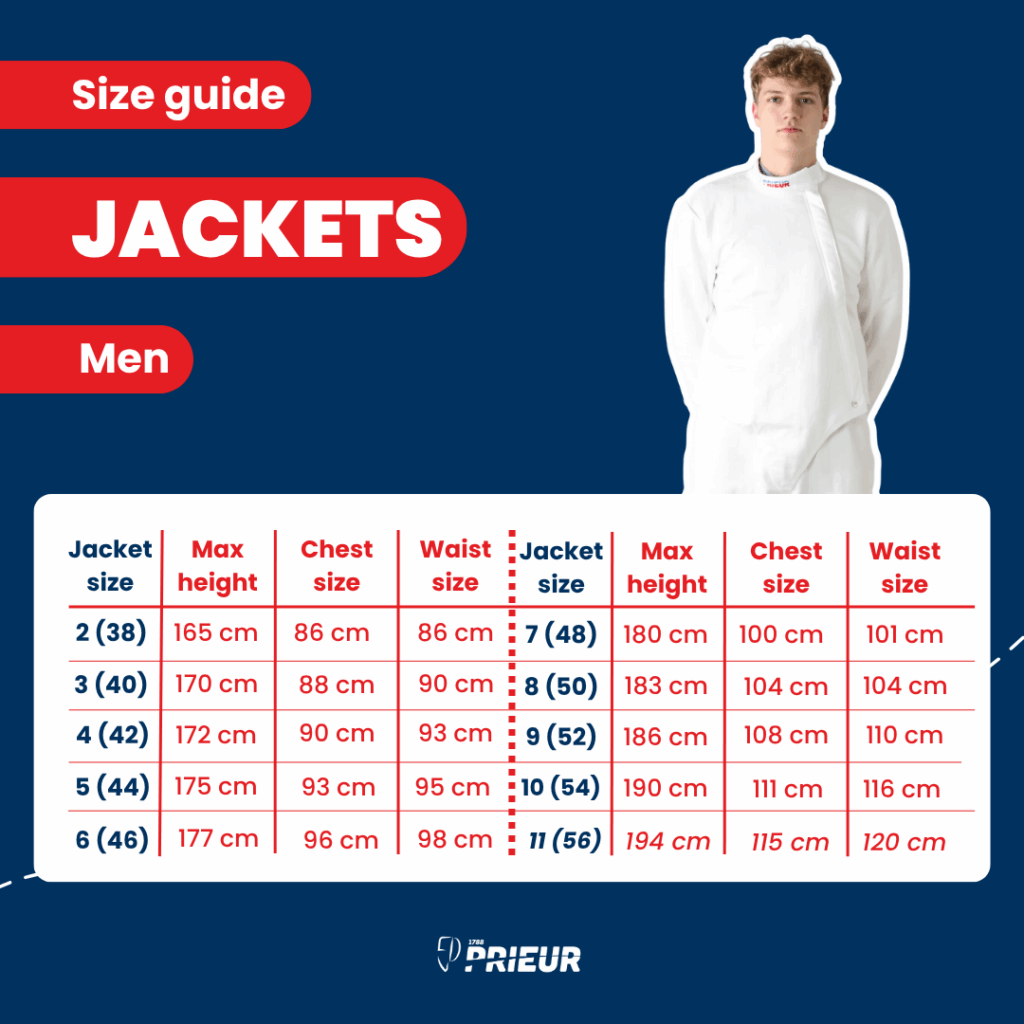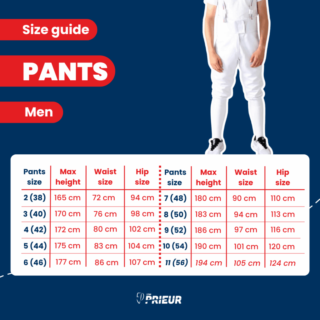 For jackets and trousers, the measurements are those of the finished garment. The ease in relation to the measurements of the body is therefore to be added (3 to 4 cm).