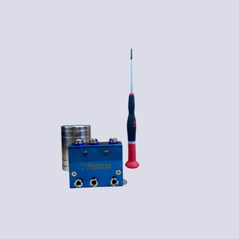 Notre pack de contrôle et de réparation fleuret PRIEUR SPORTS, dédié au contrôle et à la réparation des fleurets, contient: un tournevis (2725), un poids de contrôle fleuret 500 grammes (3530) et une boîte de contrôle (3500).